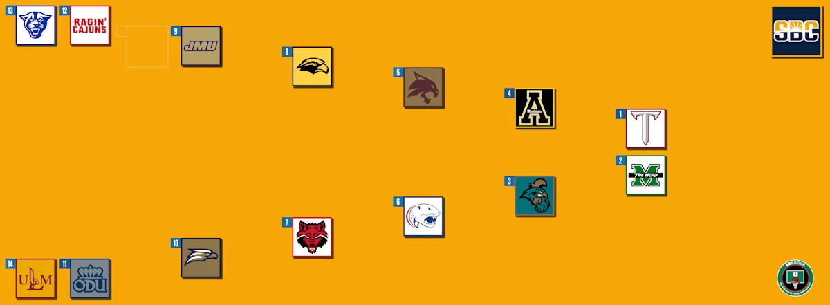 Troy, Marshall and Arkansas State (with five wins) are more likely to earn a No. 14 seed than the other 11 teams, with some contenders even finishing No. 16 in recent bracket projections.