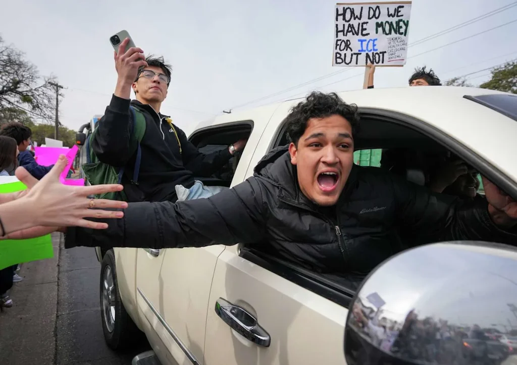 Students in schools across the state held demonstrations Friday to protest recent actions by U.S. Immigration and Customs Enforcement. Thousands of people in the Austin Independent School District participated in the protest, with some leaving middle and high schools to walk to the Texas Capitol.