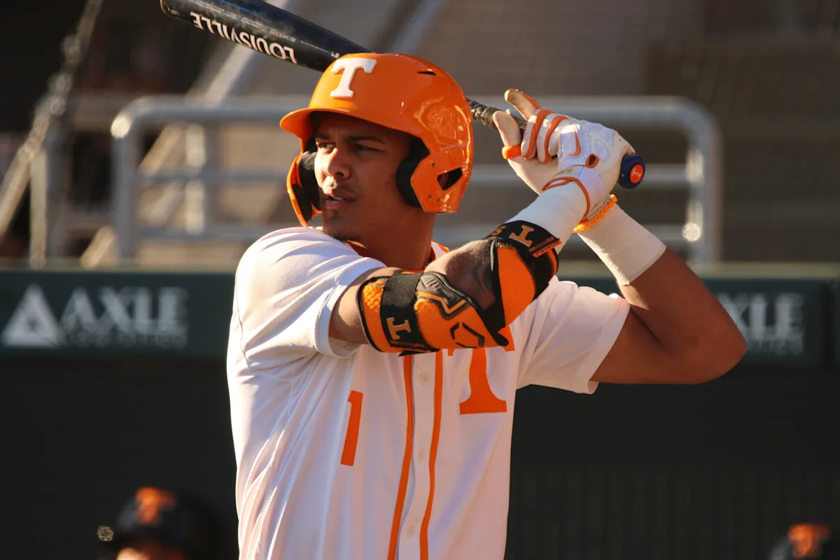 The 6-foot-5, 200-pounder transferred from Rice to left field with the Vols. In the three-game series at Tennessee, he went 8-for-14 with a .571 batting average, .600 on-base percentage, three home runs, one double, five RBIs, seven runs, one four-base ball, 18 total bases and one strikeout.