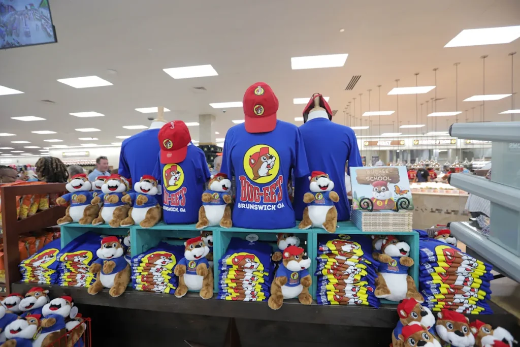 FILE – Buc-ee’s displays shirts and toys during its grand opening Tuesday, July 1, 2025, in Brunswick, Georgia. There are plans to open a new Buc-ee’s near Savannah.