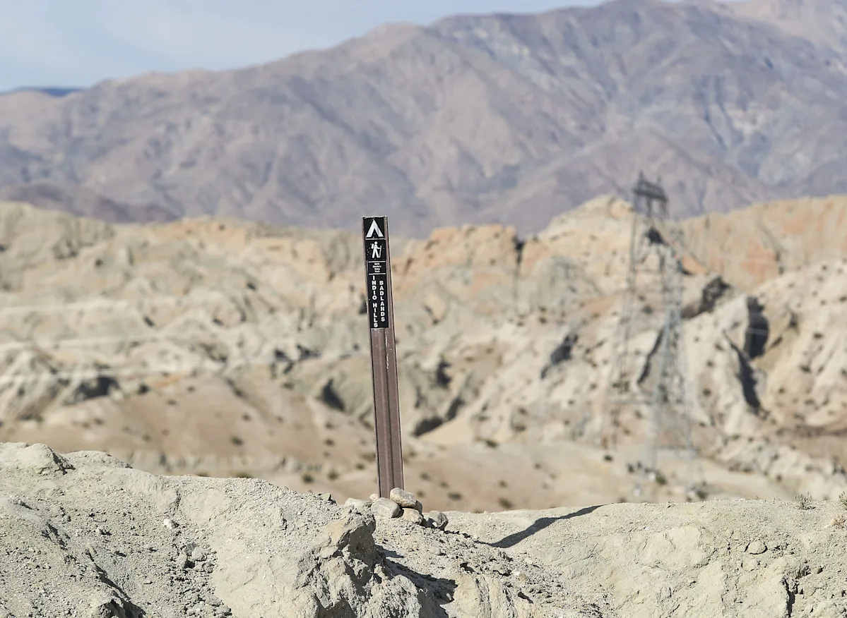 Signs guide hikers in the right direction on the Indio Mountain Badlands Hiking Trail north of Indio on March 6, 2020.