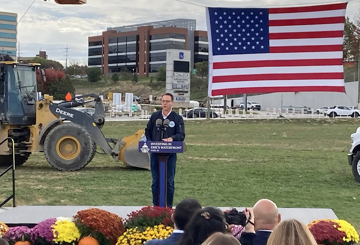 Gov. Josh Shapiro announced Oct. 17 that the state will provide funding for Erie Events’ market housing project at the former GAF Materials Corp. site along Erie’s west bay.