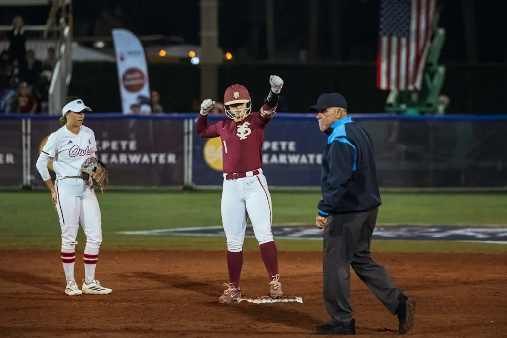 The No. 9 Florida State softball team tried to bounce back from a narrow loss to Texas Tech at the Shriners Clearwater Invitational on Friday, taking on a distraught FAU team, rallying from a 4-1 deficit to defeat the Owls 9-5.