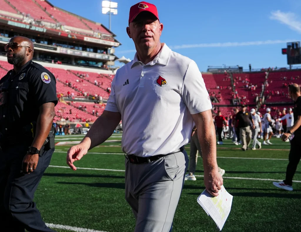 Louisville football coach Jeff Broohm leaves the field after his team defeated Eastern Kentucky at L&N Federal Credit Union Stadium.