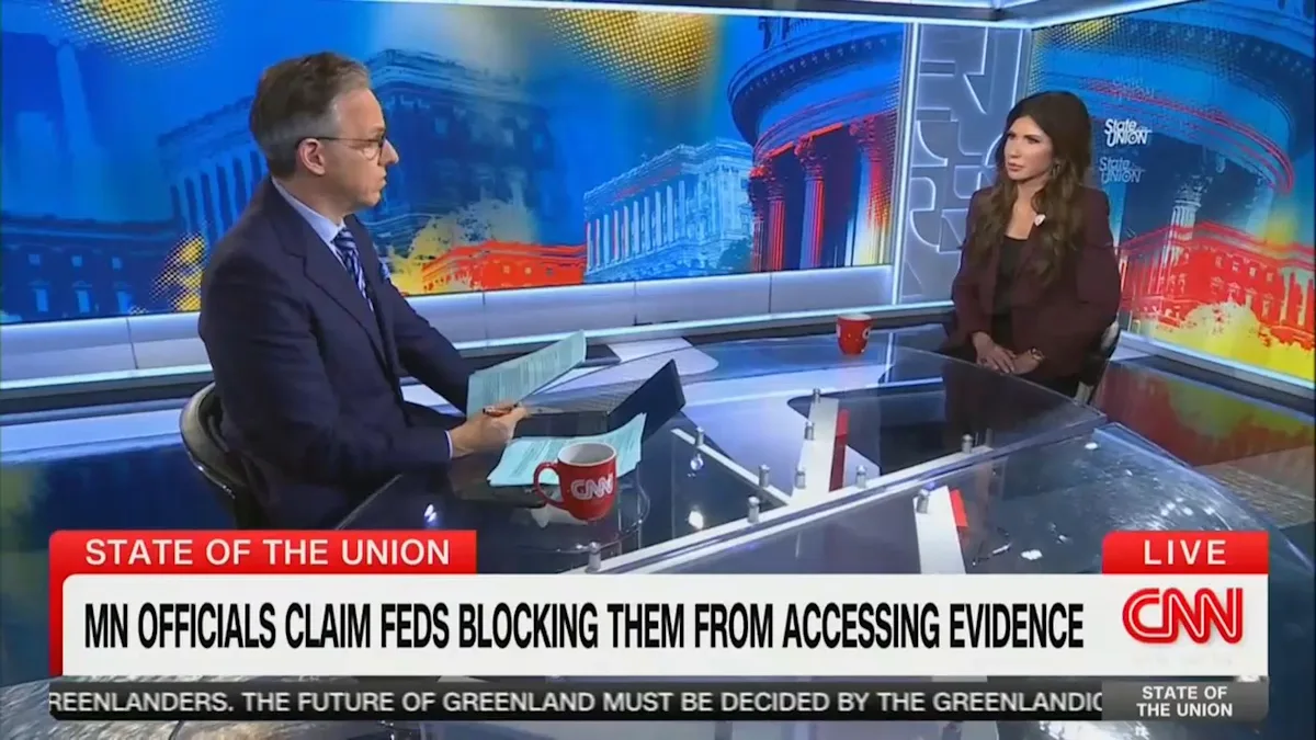 In the final moments of a tense marathon interview with CNN state of the union address On Sunday, Tapper played footage from Jan. 6 and compared it to the fatal shooting Renee Goode ICE agents in Minneapolis.