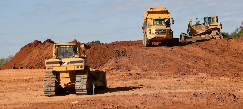 Workers use heavy equipment to prepare a construction site in Montgomery, Alabama, in October 2021.