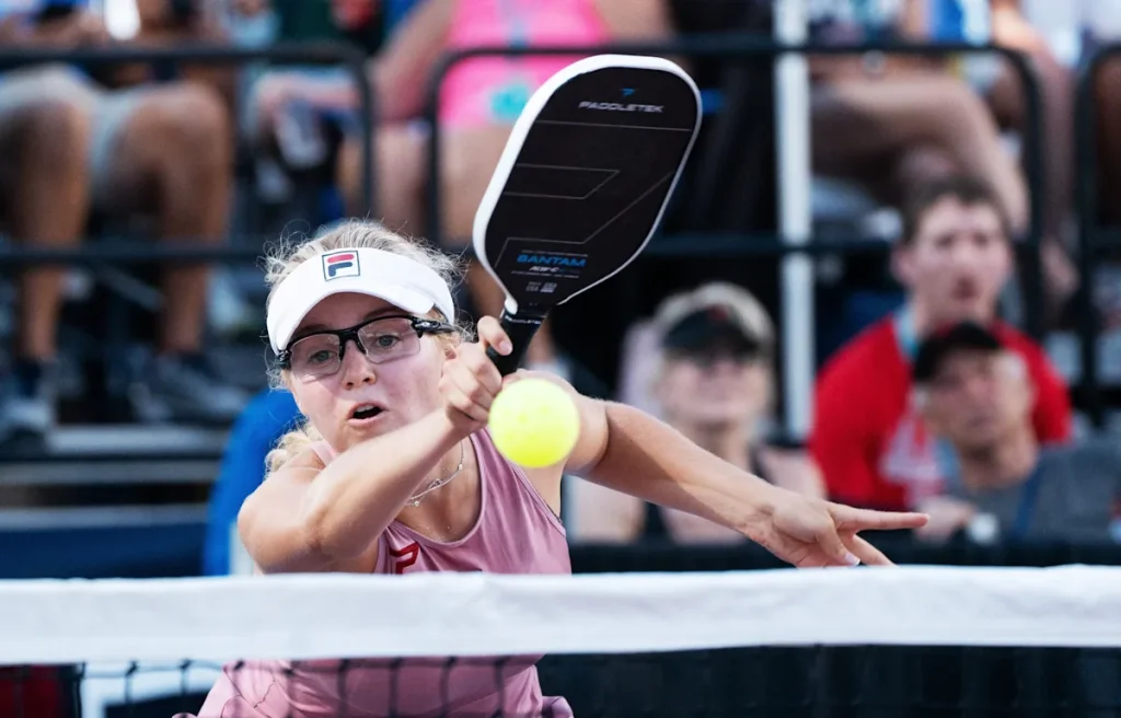 Anna Leigh Waters returns a ball during the Minto U.S. Pickleball Open Women’s Professional Doubles gold medal match at East Naples Community Park on May 3, 2025 in Naples, Florida. She and her mother, Leigh Waters, won the competition.
