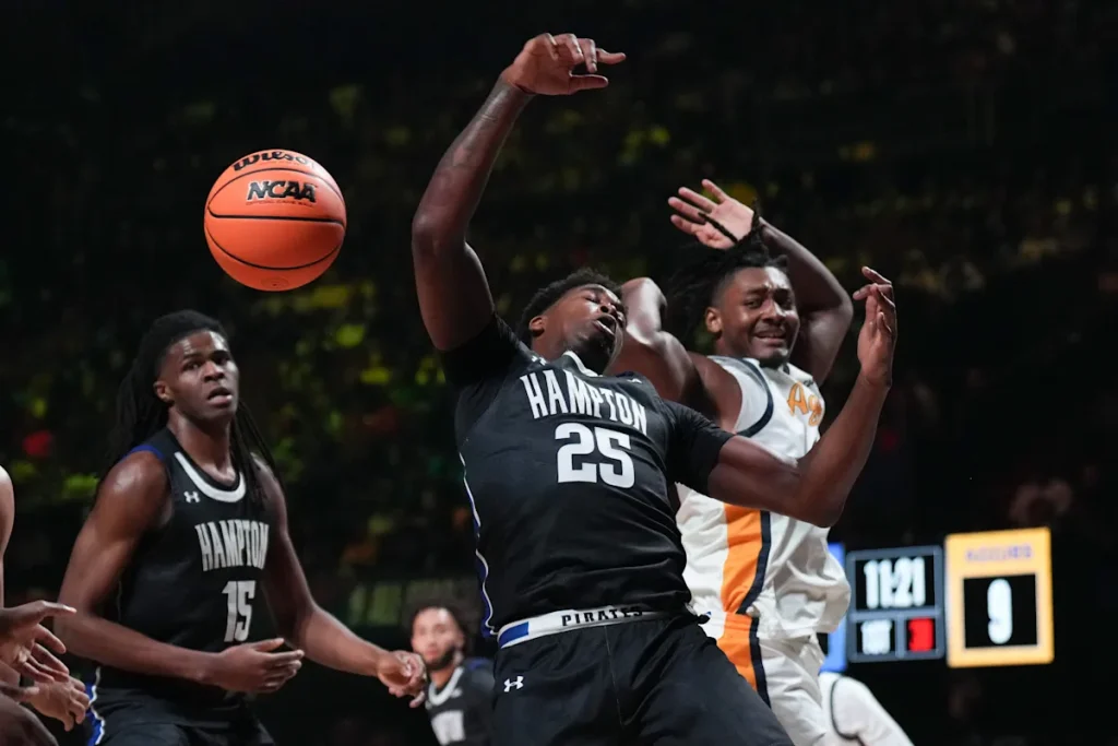 Hampton (12-14, 6-7) led 9-2 in the final 43 seconds, with Gaines Wyatt hitting just two free throws. He and Xzavier Long each scored 17 points for the Pirates. Elijah Kennedy scored 13 points off the bench. They had five players in foul trouble, including Long and Josh Ogundele, who left the game with six.