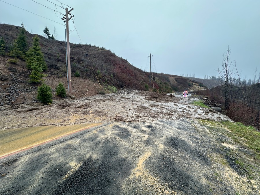 A landslide occurred on North Fork Road in Marion County after an atmospheric river impacted Oregon. February 23, 2026 (Courtesy Marion County Sheriff’s Office).