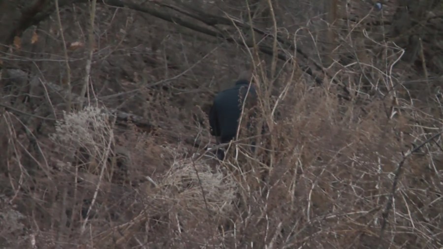 Police were seen scouring nearby woods and the area was cordoned off for much of the day and into the evening.