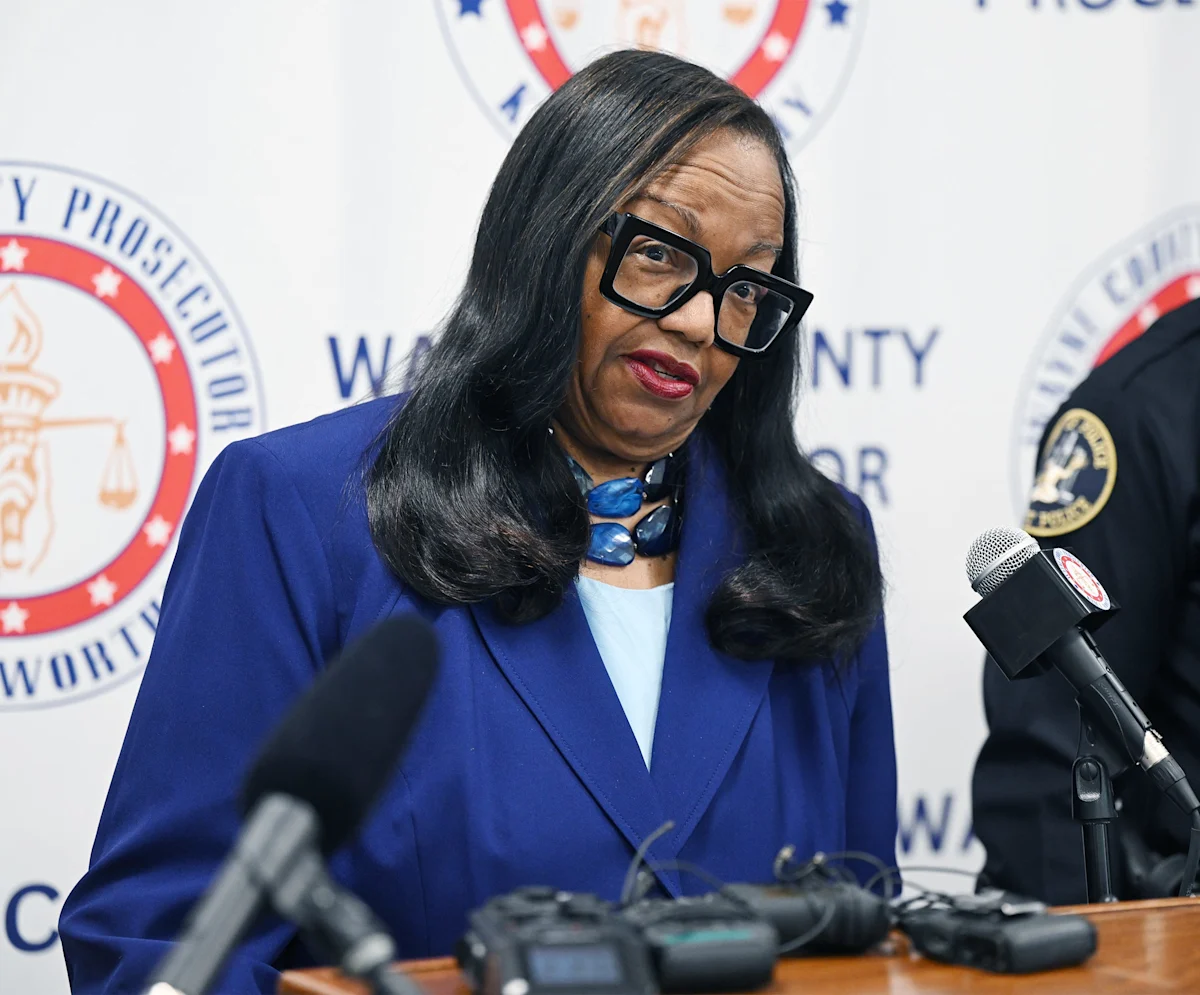 Wayne County Prosecutor Kym Worthy announced multiple charges of kidnapping and first- and third-degree criminal sexual conduct against retired Detroit police Sgt. Benjamin Wagner during a press conference in Detroit on March 19, 2026.