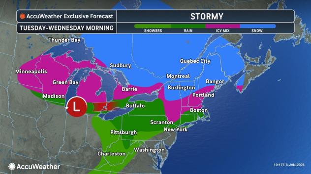 Snowfall amounts of 1-6 inches are expected across the region, with AccuWeather Local StormMaxâ„¢ snowfall amounts of up to 12 inches possible in parts of south-central Ontario, the Green and White Mountains of New England, and southeastern Quebec near the U.S. border.