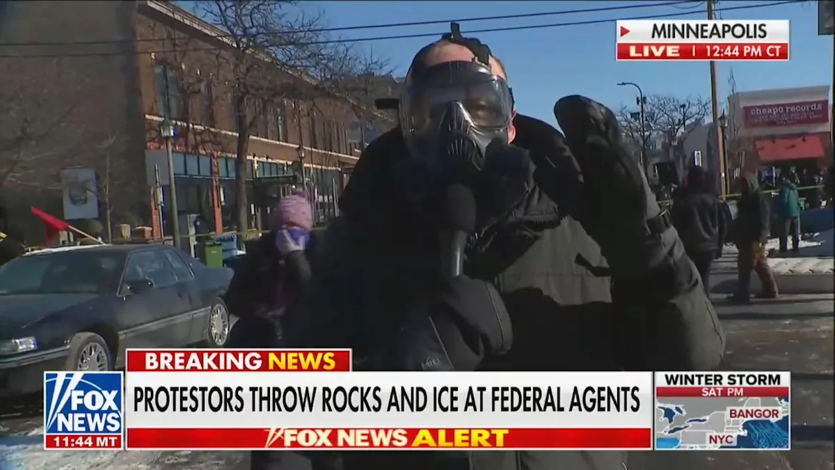 Wearing a black gas mask, Harrigan reported live from the chaotic streets of Minneapolis on Saturday afternoon. host Aisha Hasni Tell Harrigan that the measures ICE and Border Patrol agents are using to stop protesters don’t seem to be working.