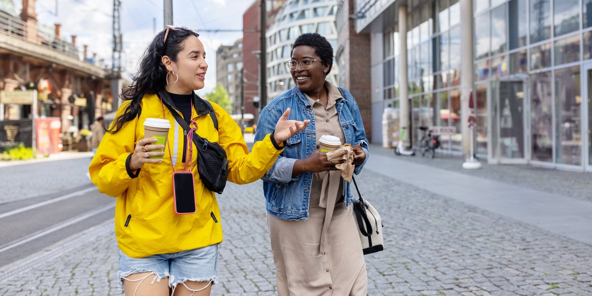 Interrupting others mid-conversation to share a relevant story is a social habit many people with ADHD can’t help but engage in. Luis Alvarez via Getty Images