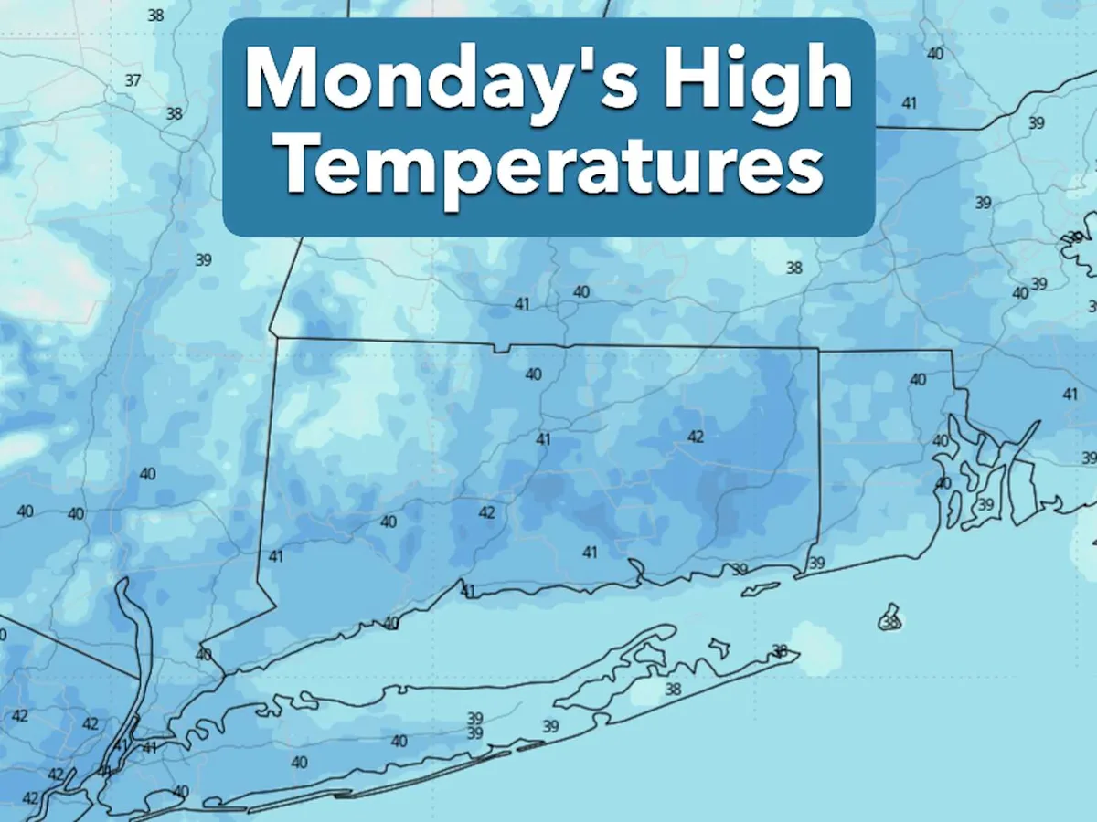 Temperatures could reach 40 degrees on Monday as a major storm passes through southern Connecticut. (weather clock)