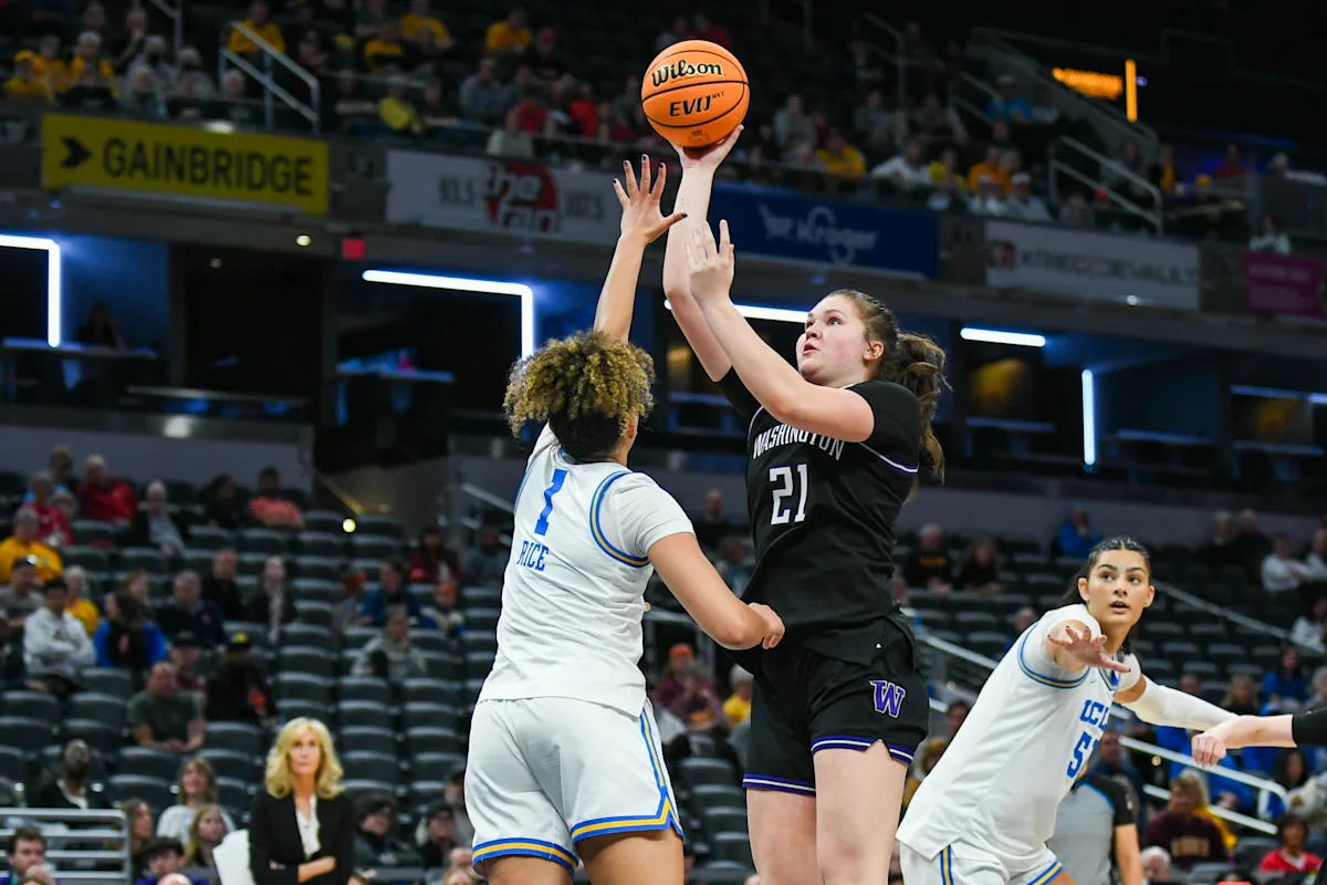 After five straight years of winning or tying for conference titles (and a cumulative 1 summit loss), SDSU actually trailed rival North Dakota State in this year’s regular season. They split the regular season series with the Bison, but crushed the offense in the conference tournament final to earn that bid. NDSU narrowly missed the at-large bid and earned the top seed in the women’s CBT. SDSU ranks 52nd nationally in Bart Torvik’s efficiency ratings — No. 42 on offense and 82 on defense. While the Huskies have a very solid 8-9 record against tournament teams, SDSU has played just three such games and is 0-3. It might be a little unfair to judge SDSU by that metric, as those three teams rank 18th or better nationally in efficiency. SDSU hasn’t played a team with an efficiency rating of 19-52, and they’ve spent most of their schedule outside the top 100. At 19, UW was far better than any team the Jacks had beaten, but they didn’t get too many bites out of that apple.