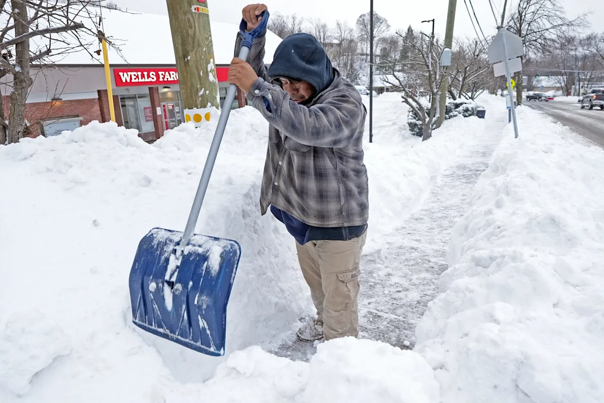 Luis Villa shovels a sidewalk on Maple Street in Croton-on-Hudson on January 26, 2026, after yesterday’s snowstorm dropped more than a foot of snow in New York City and the Lower Hudson Valley area.