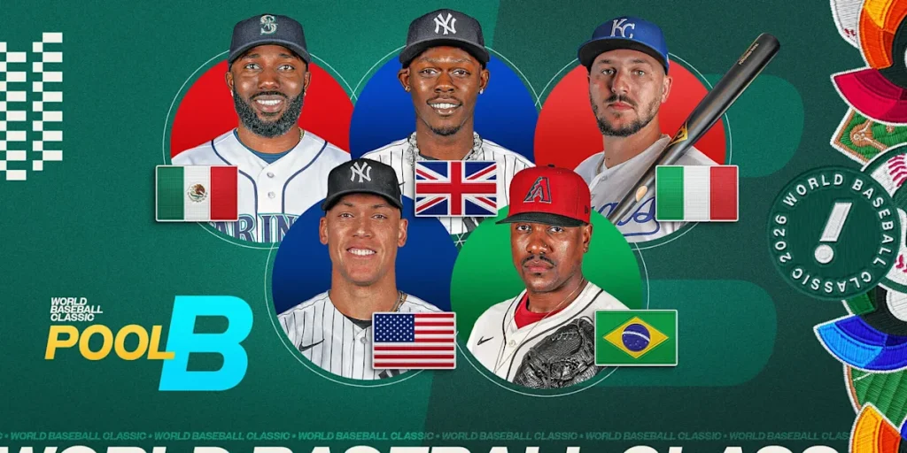 Pool B: Tournament favorite Team USA (-110 at BetMGM) will play at Houston’s Daikin Park along with Mexico, Italy, Great Britain and Brazil. There’s plenty of star power here in the likes of Aaron Nola and Vinnie Pasquantino (Italy), Randy Arozarena and Alejandro Kirk (Mexico), Jazz Chisholm Jr. (UK)… and some decent players in red, white and blue.